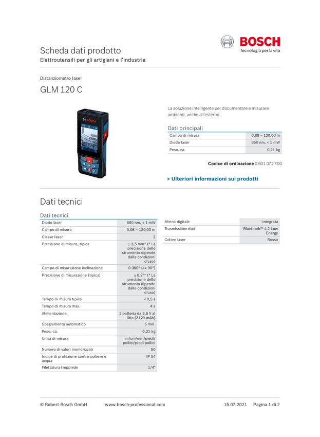Bosch Professional GLM120C Prof. Dalmierz laserowy Maksymalny pomiar 120 m