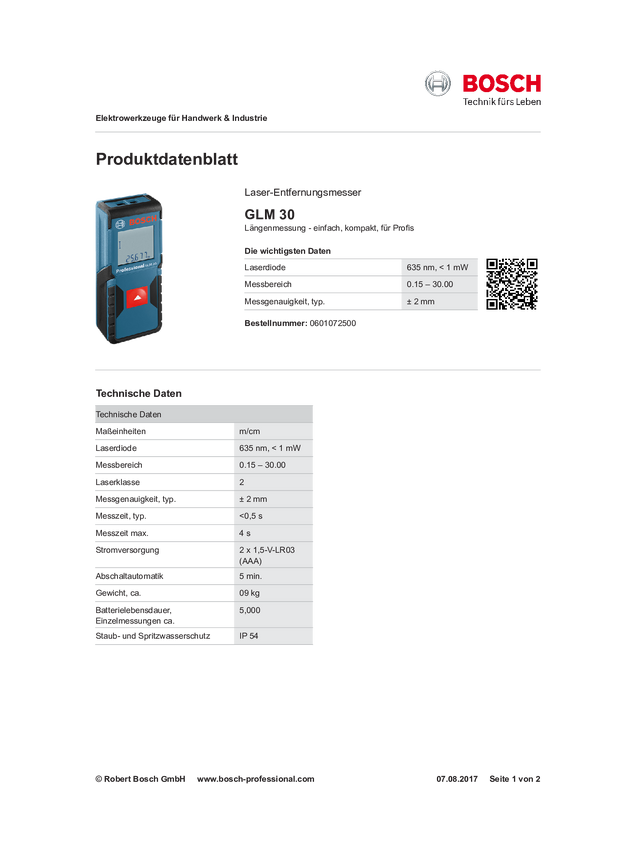 Bosch Professional GLM 30 Dalmierz laserowy Maksymalny pomiar 30 m