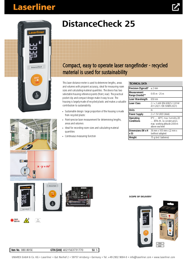 Laserliner DistanceCheck Dalmierz laserowy Maksymalny pomiar 25 m