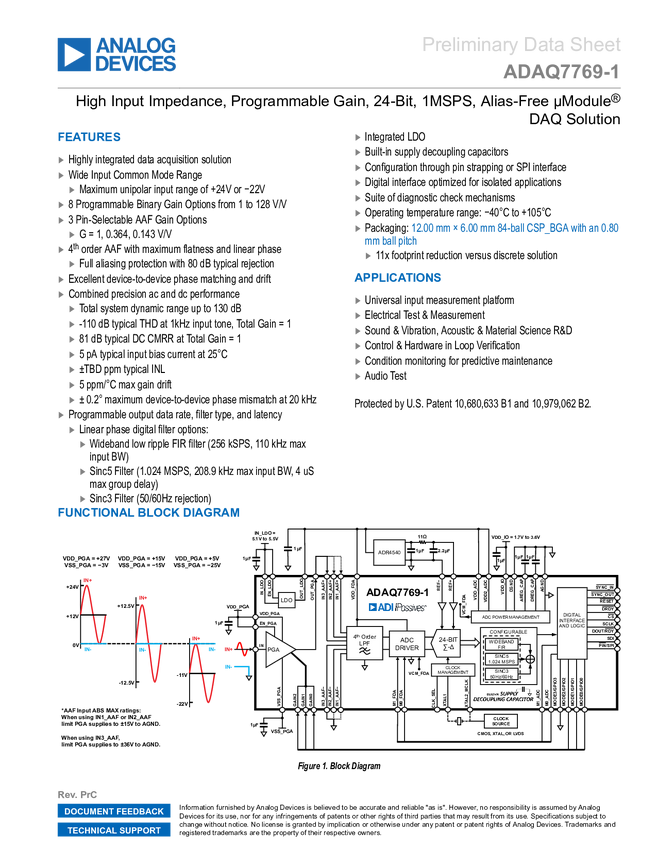 High Input Impedance, Programmable Gain, 24-Bit, 1MSPS, Alias-Free μModule DAQ Solution