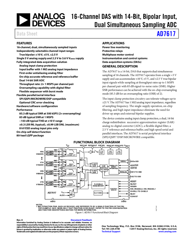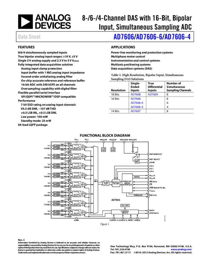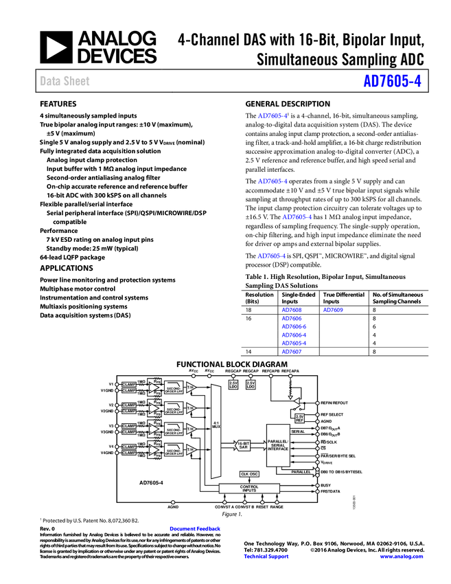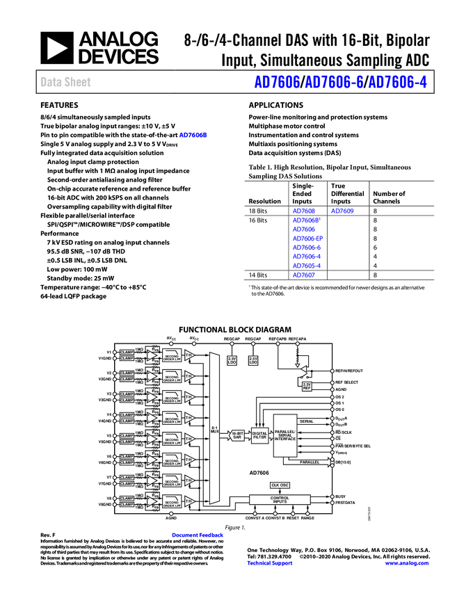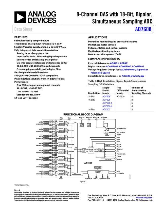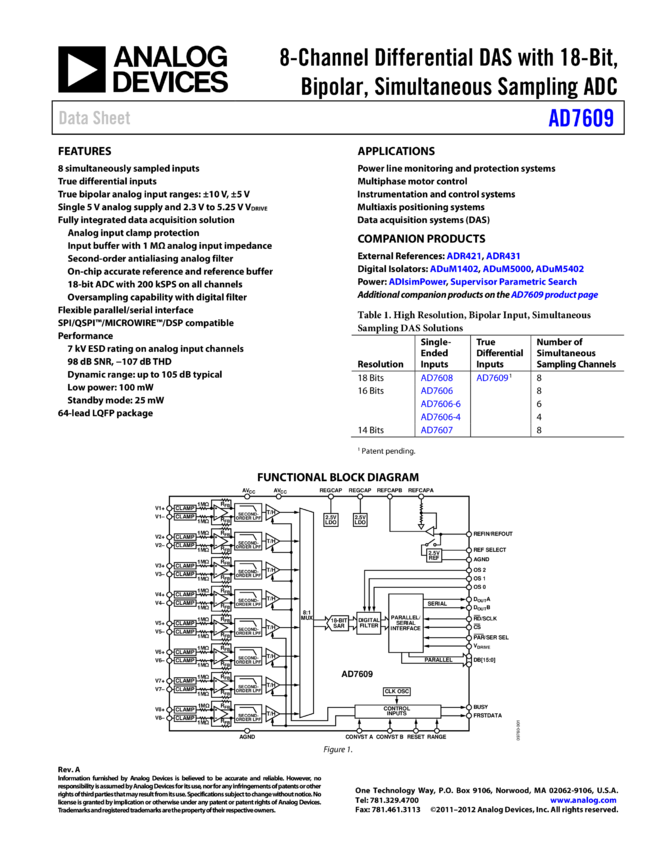 AD7609: 8-Channel Differential DAS with 18-Bit, Bipolar, Simultaneous Sampling ADC