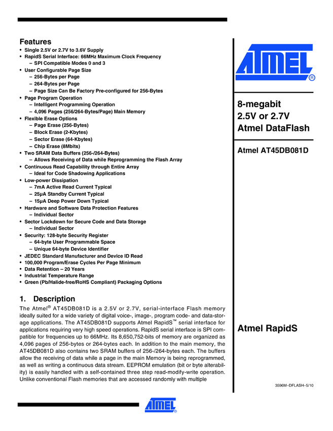 8-Mbit 2.5V Minimum DataFlash Memory or