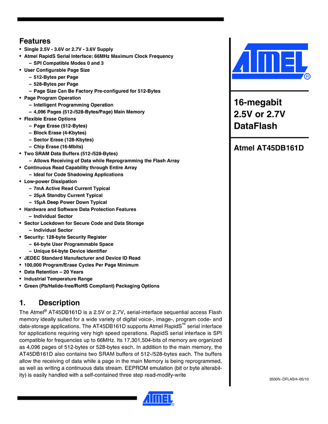 16-Mbit 2.5V Minimum DataFlash Memory or