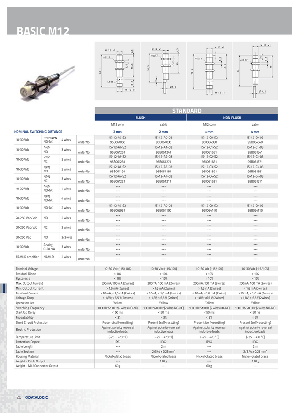 Datalogic Czujnik zbliżeniowy indukcyjny M12 podtynkowy PNP IS-12-A1-S2
