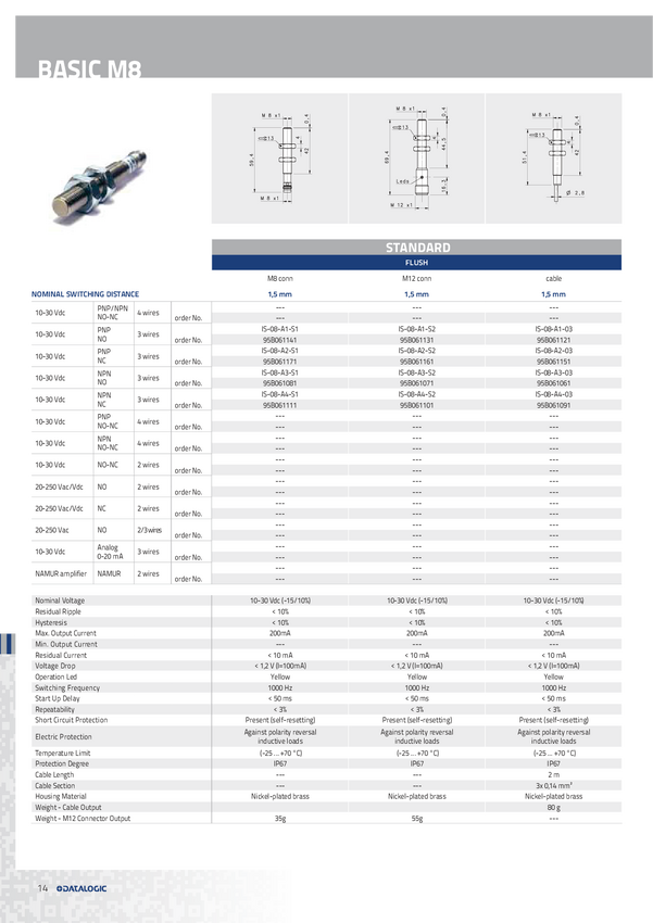 Datalogic Czujnik zbliżeniowy indukcyjny M8 podtynkowy PNP IS-08-A1-03