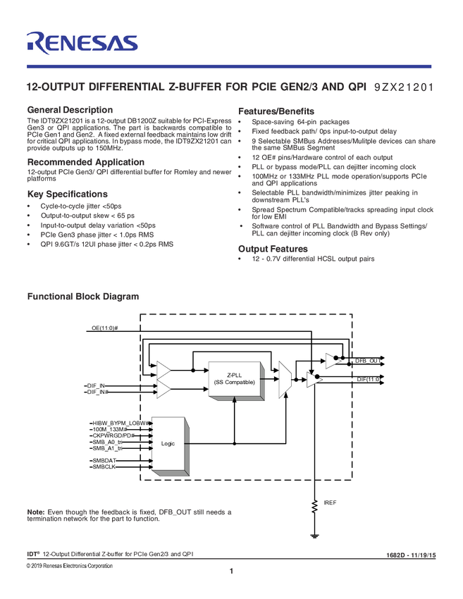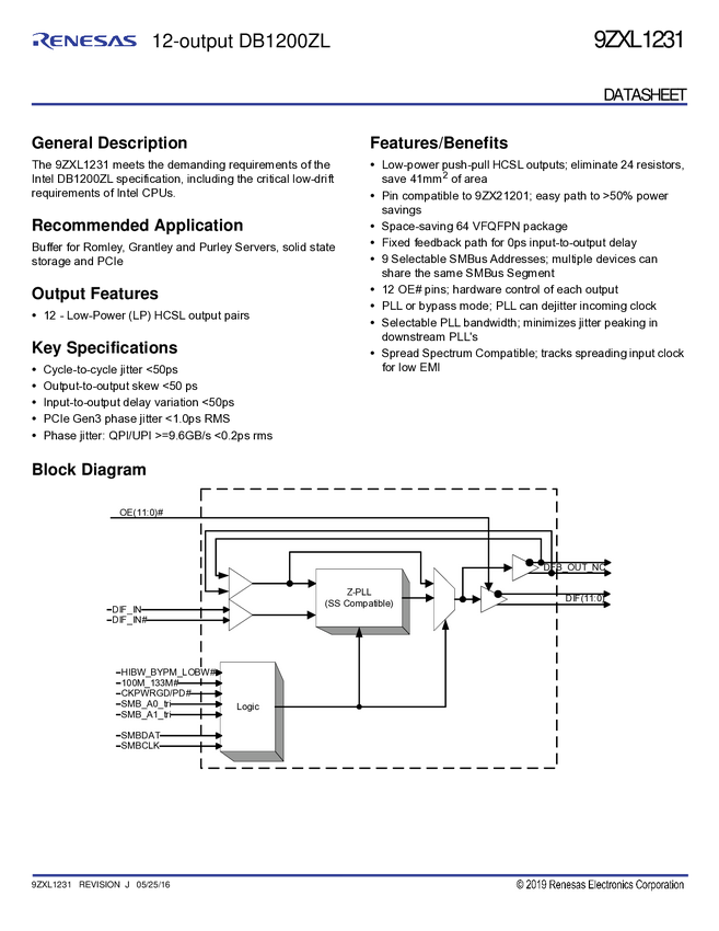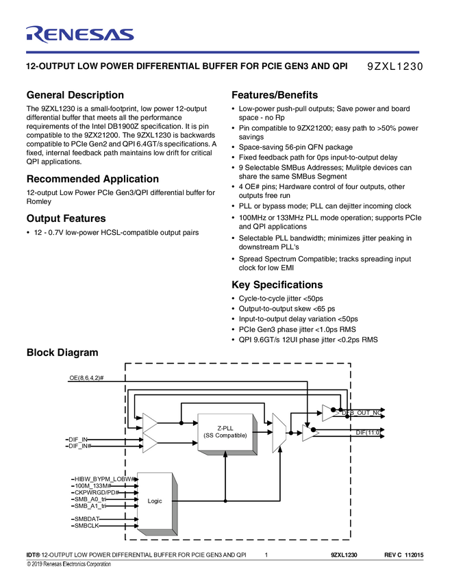 DB1200ZL 12-Output Low Power HCSL Buffer