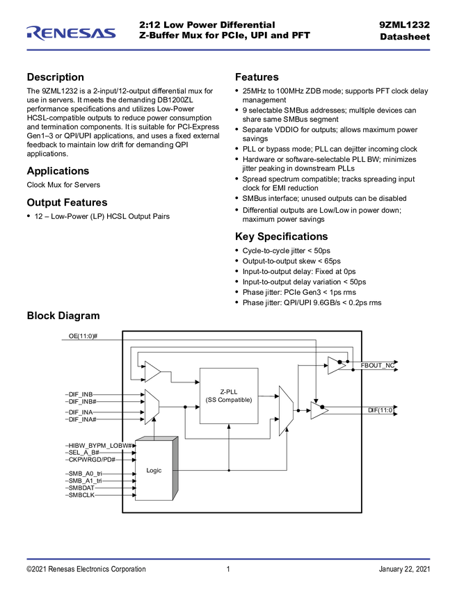 2:12 DB1200ZL Derivative Low Power HCSL Clock Mux