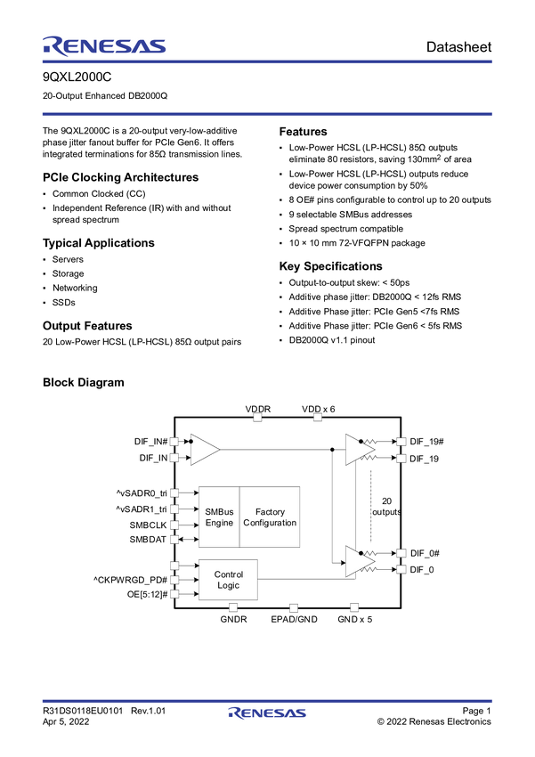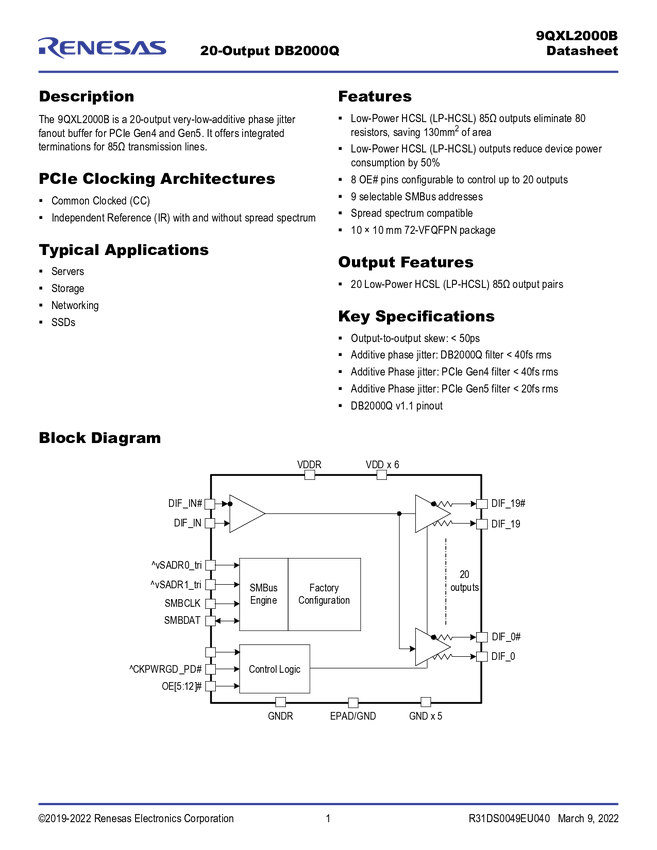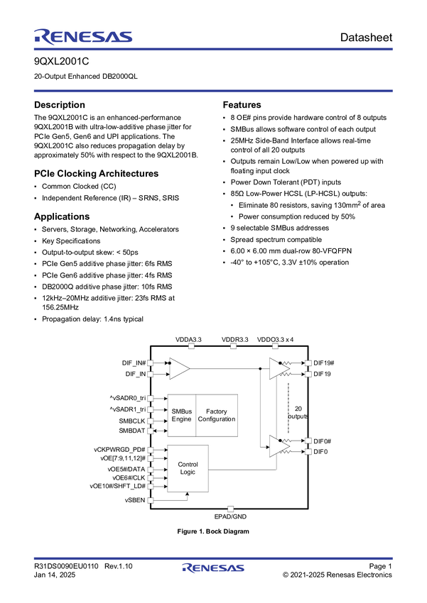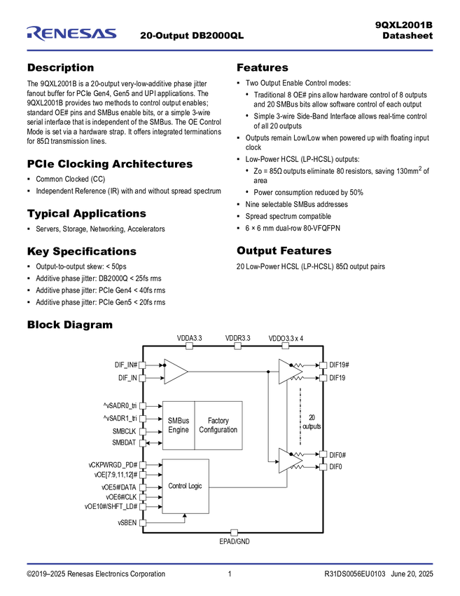 20-Output Enhanced DB2000Q PCIe Clock Buffer