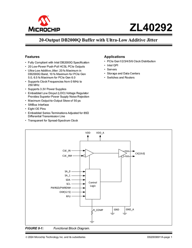 ZL40292 - 20-Output DB2000Q Buffer with Ultra-Low Additive Jitter