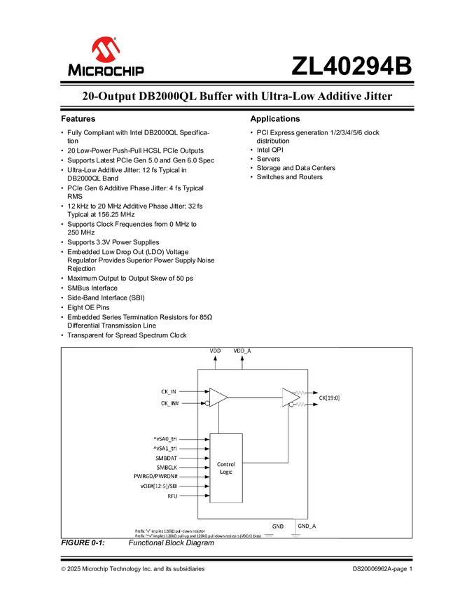 ZL40294B - 20-Output DB2000QL Buffer with Ultra-Low Additive Jitter