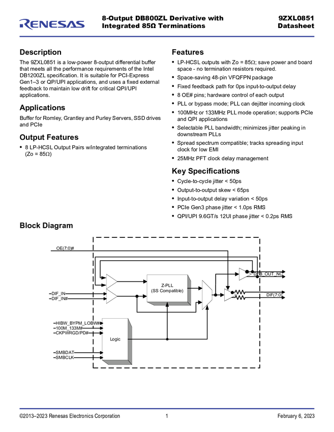 8-Output DB800ZL Derivative with Integrated 85ohm Terminations
