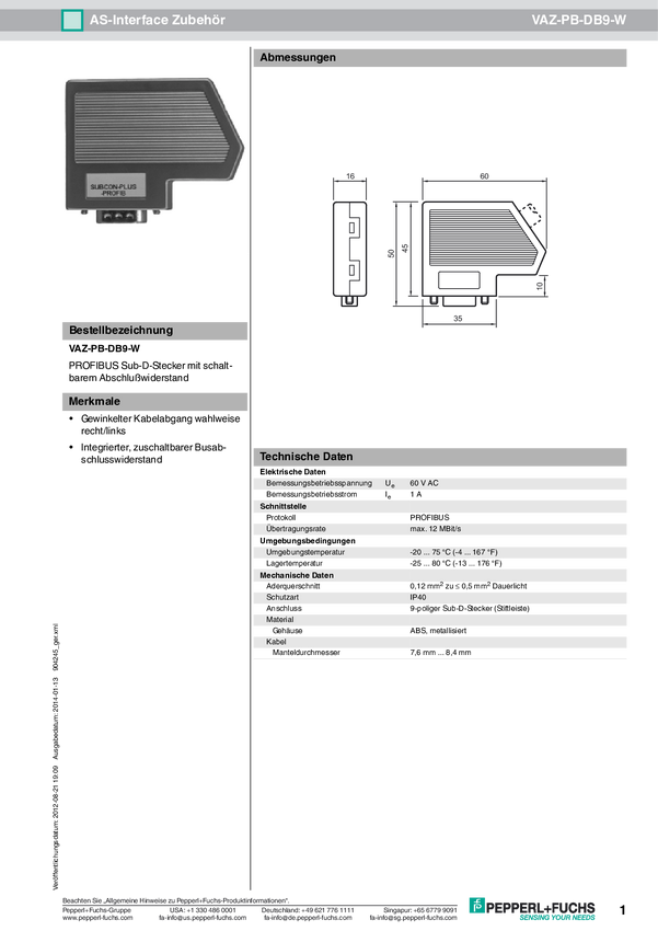 Pepperl+Fuchs 904245 VAZ-PB-DB9-W, piny: 9, 1 szt.