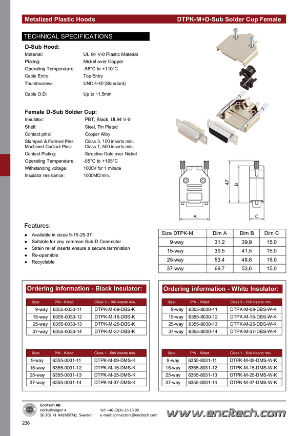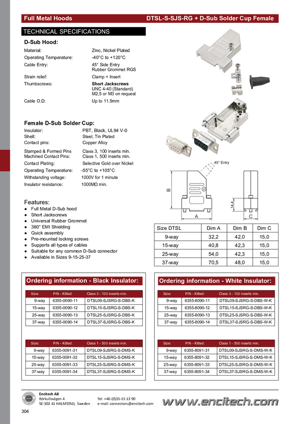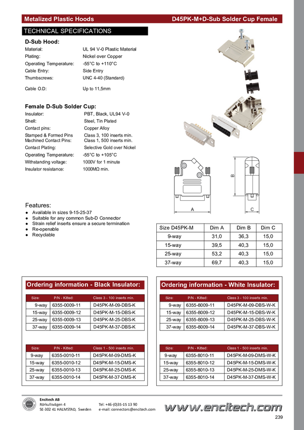 encitech D45PK-M-25-DBS-W-K 6355-8009-13 Zestaw listew żeńskich D-Sub 45 ° Ilość styków: 25 kielich lutowniczy 1 szt.