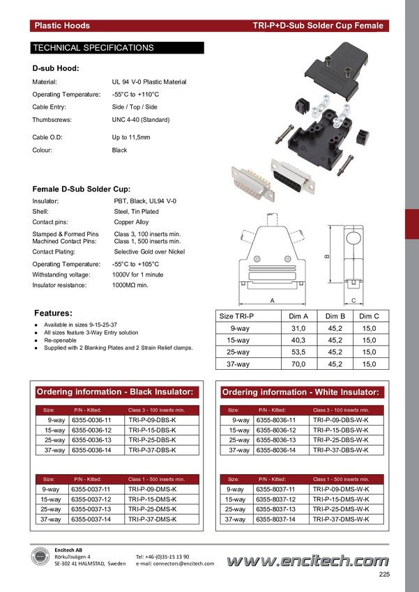 encitech TRI-P-15-DBS-W-K 6355-8036-12 Zestaw listew żeńskich D-Sub 180 ° Ilość styków: 15 kielich lutowniczy 1 szt.