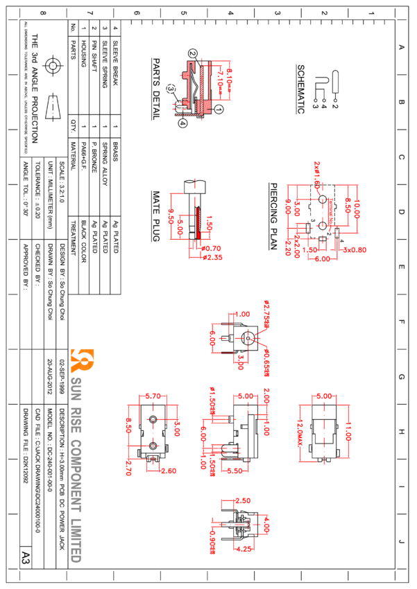 Gniazdo męskie z kołkiem Ø0.65 mm, otwór DØ2.75 mm