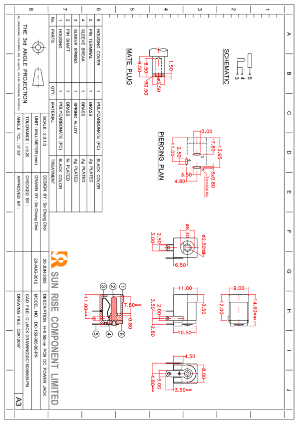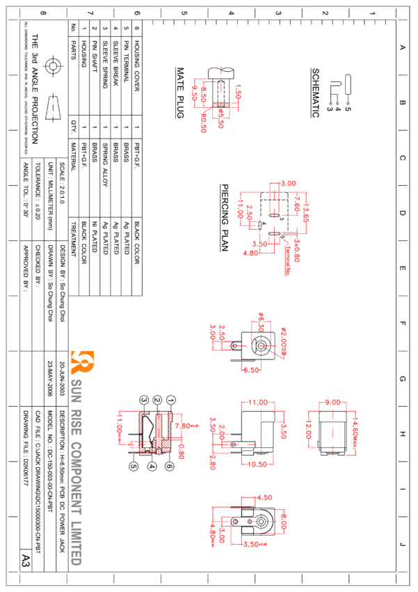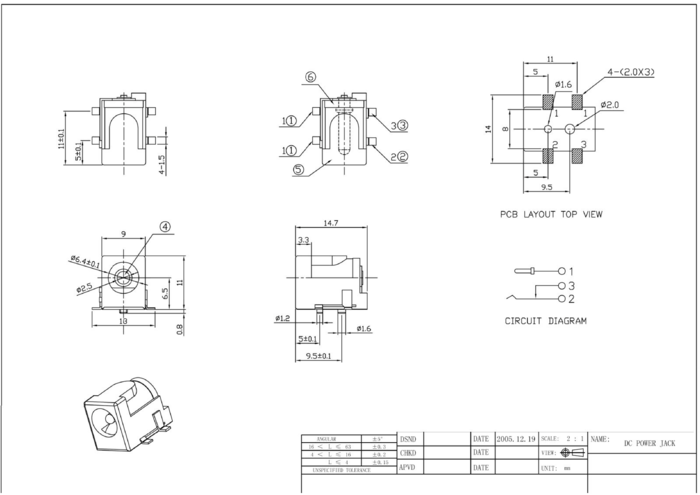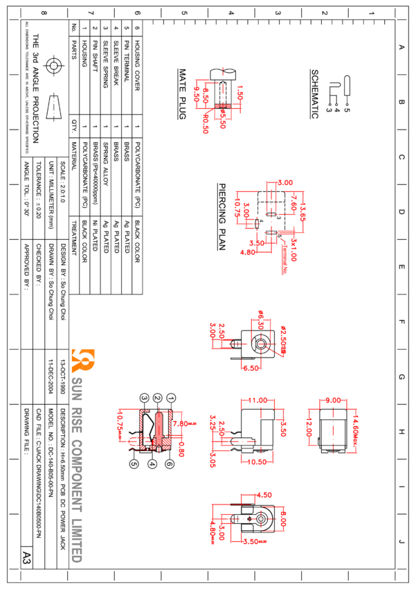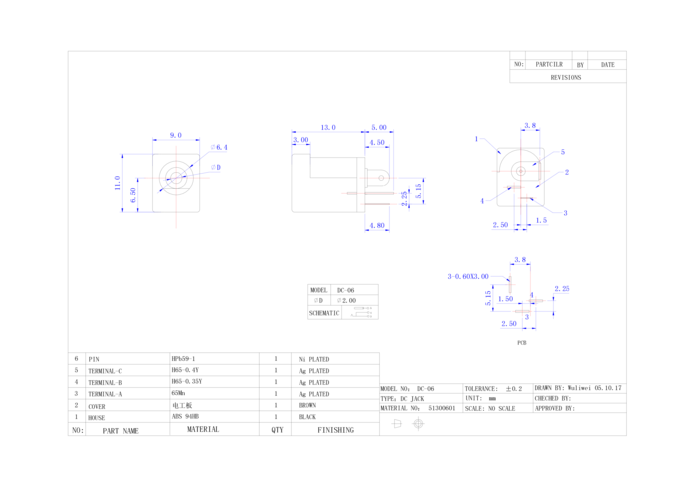 Gniazdo męskie, kątowe, z kołkiem , otwór DØ6.3 mm, nóżki