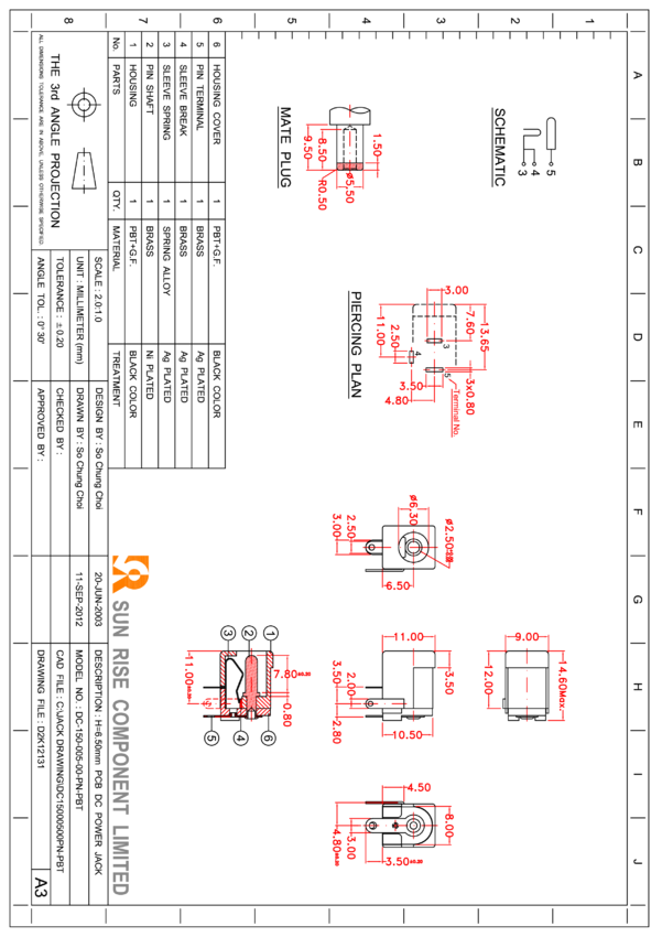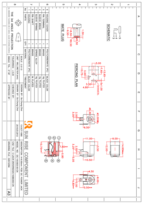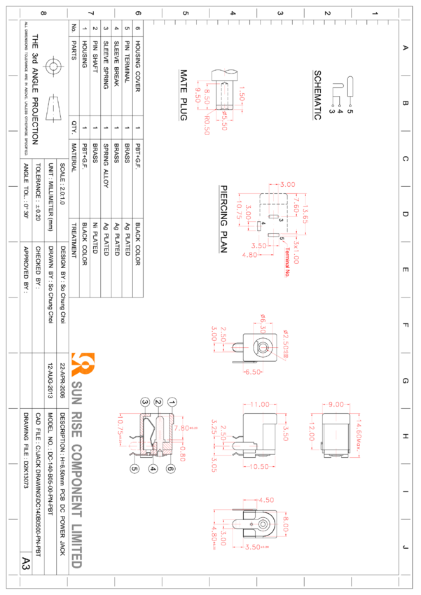 Gniazdo męskie, kątowe, , z kołkiem , otwór DØ6.3 mm, (UL94V-0)