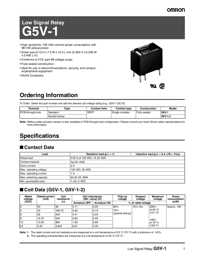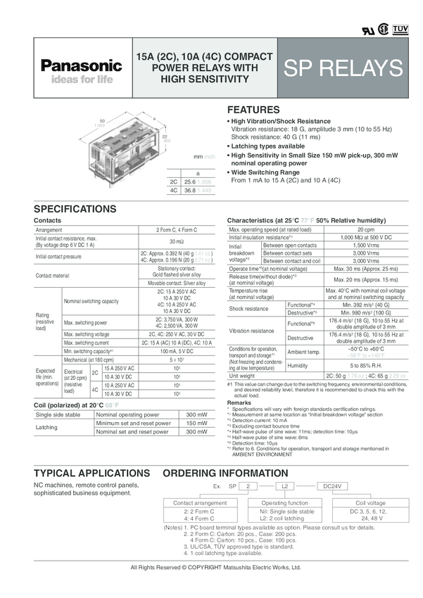 Electromechanical Relay DPST-NO/DPST-NC 6A 24VDC 864Ohm Through Hole