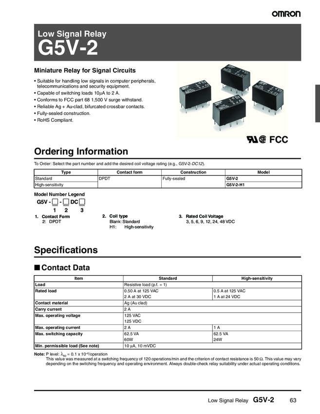 Electromechanical Relay DPDT 2A 48VDC 7.68KOhm Through Hole