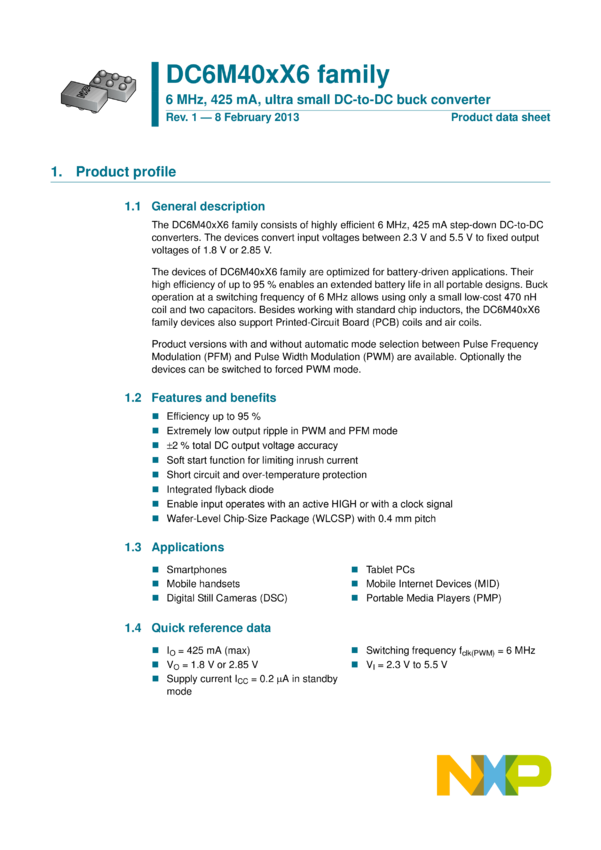 6 MHz, 425 mA, ultra small DC-to-DC buck converter