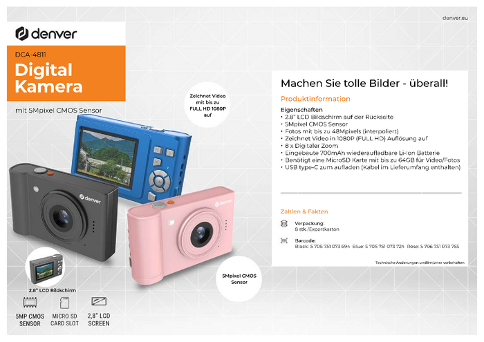 Denver DCA-4811BU BLUE Aparat cyfrowy 48 MPx niebieski
