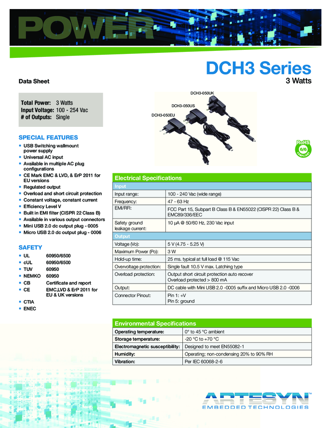 AC/DC Power Supply Single-OUT 5V 0.55A 3W