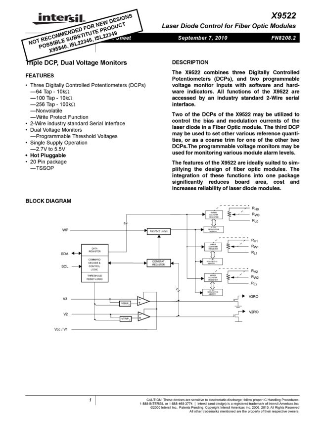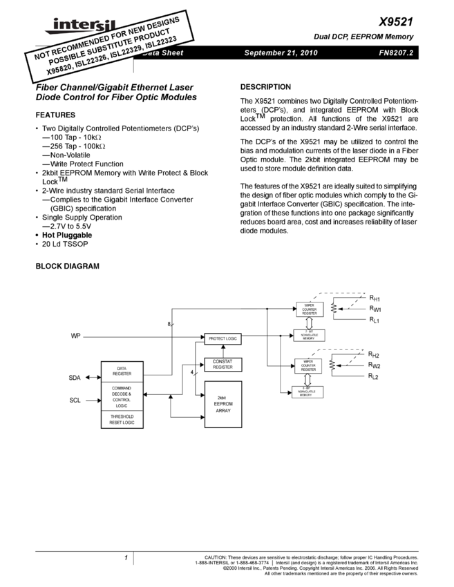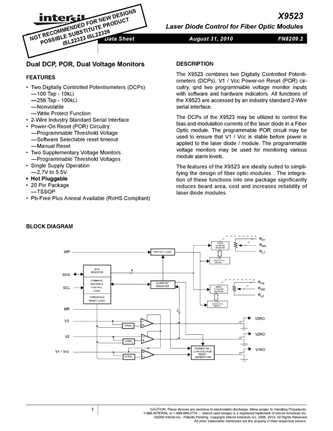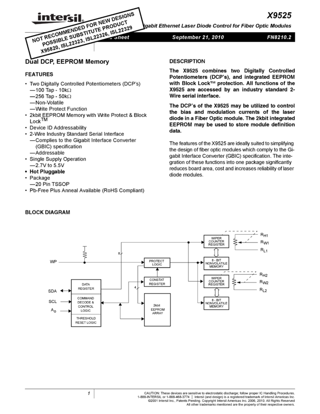 Fiber Channel/Gigabit Ethernet Laser Diode Control for Fiber Optic Modules Triple DCP, POR, 2kbit EEPROM Memory, Dual Voltage Monitors