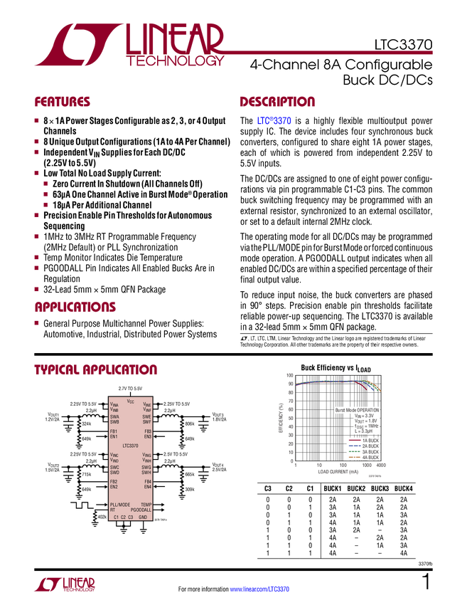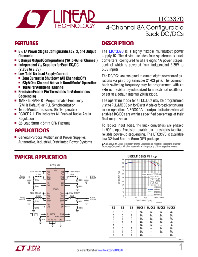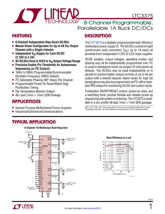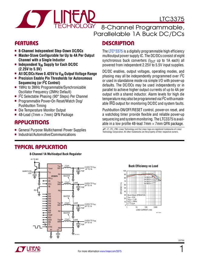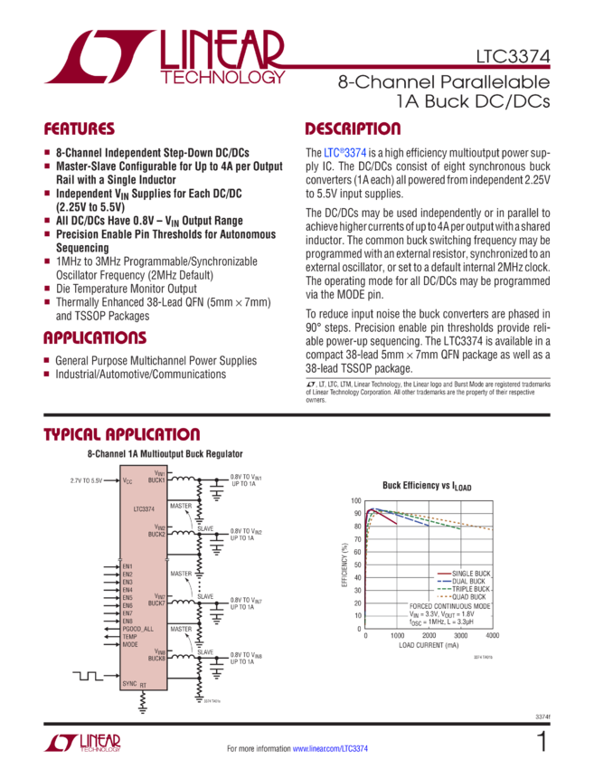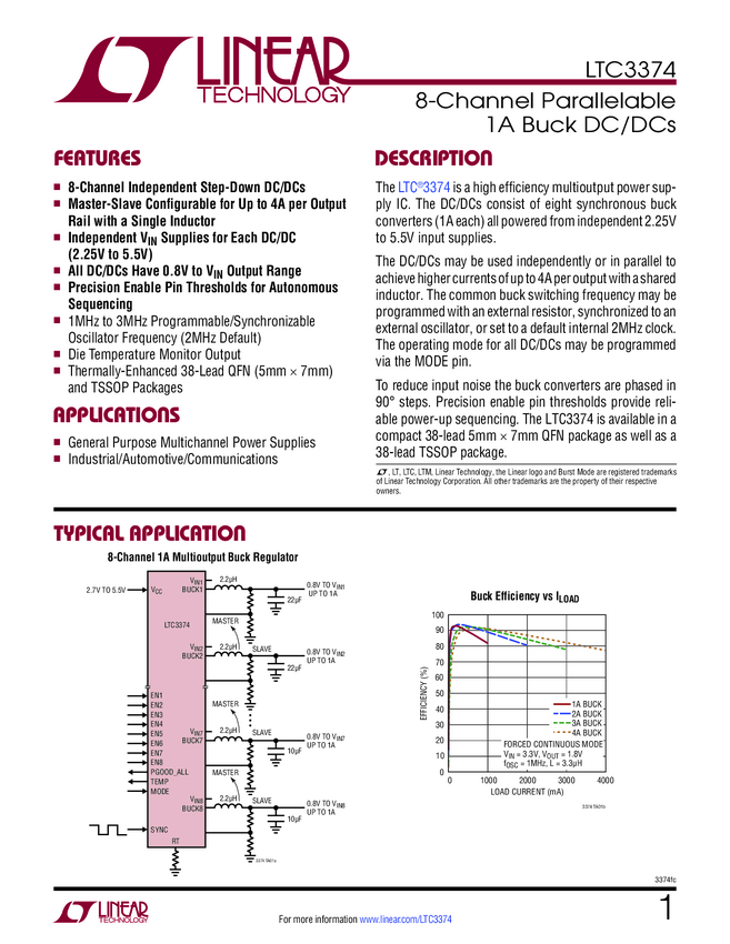 High Accuracy 8-Channel Parallelable 1A Buck DC/DCs