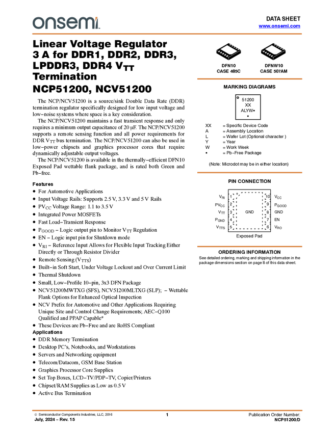 3A Sink/Source DDR Termination Regulator w/ VTTREF Buffered Reference for DDR2, DDR3, DDR3L and DDR4