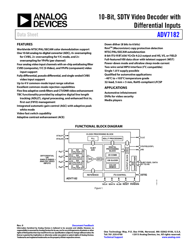 ADV7182: 10-Bit, SDTV Video Decoder with Differential Inputs