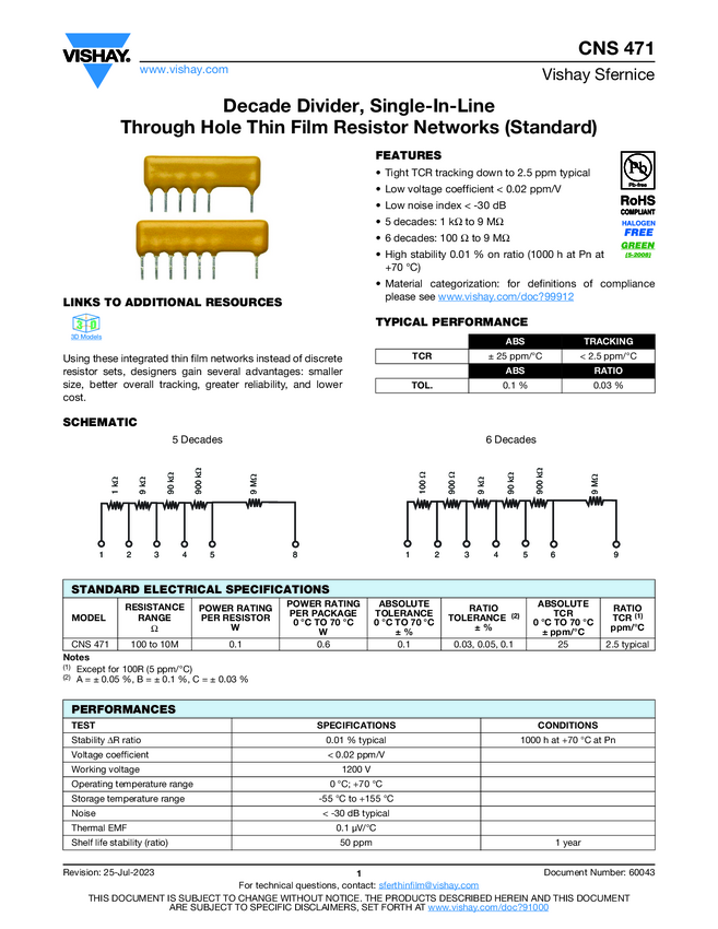 Decade Divider, Single-In-Line Through Hole Thin Film Resistor Networks (Standard)