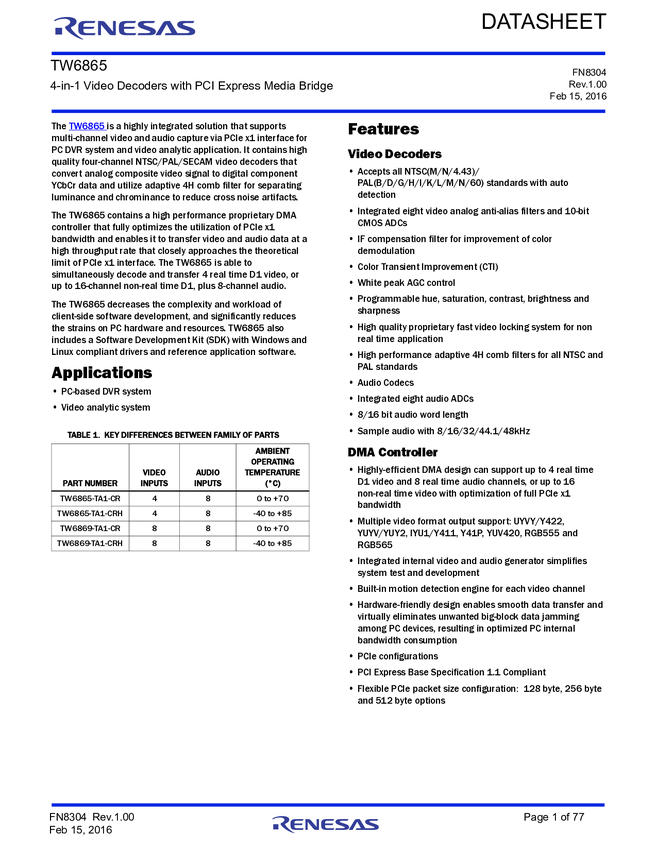 4-CH Audio/Video Decoders with 66MHz PCI Interface