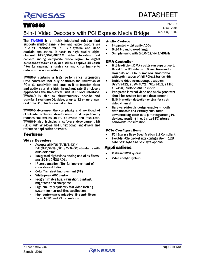 8-in-1 Video Decoders with PCI Express Media Bridge