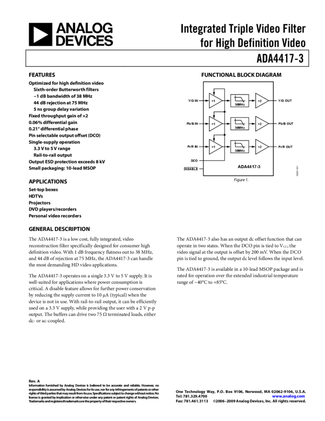 MAX9586, MAX9587, MAX9588, MAX9589 Single, Dual, Triple, and Quad Standard-Definition Video Filter Amplifiers with AC-Coupled Input Buffers
