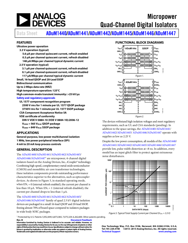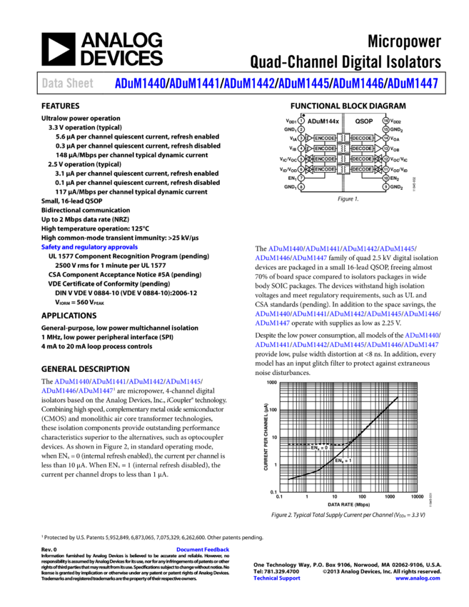 ADUM1447: Micropower Quad-Channel Digital Isolator, Default Low (2/2 Channel Directionality)