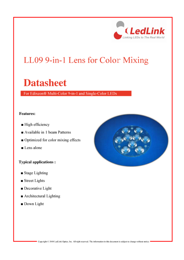 Soczewka LL24ED-AB25L, 25&deg, D: 175mm, H: 12.6mm, do diod LED High Power CREE seria XR-E, LedLink