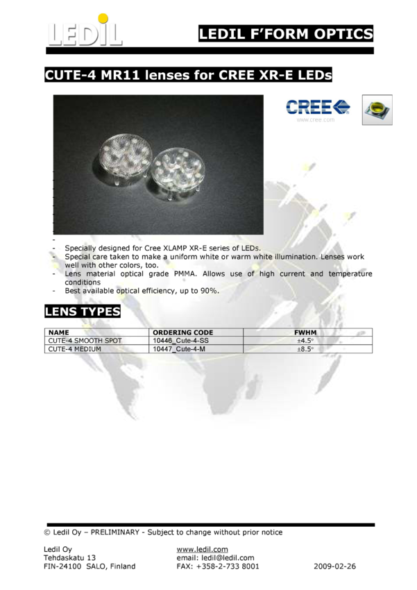 Soczewka CUTE3, Medium, ±11&deg, do diod LED High Power CREE seria XP, XLAMP, Ledil