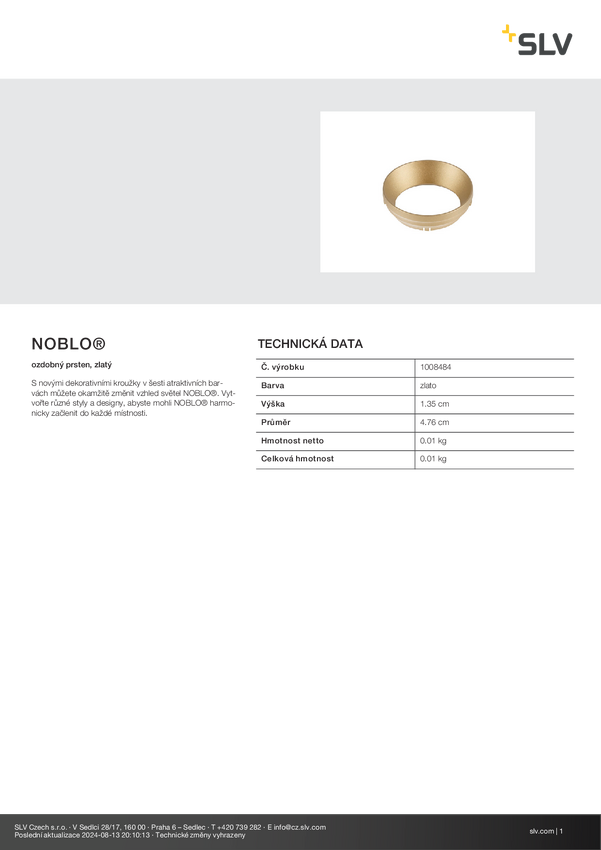 SLV LIGHT EYE® 90 1008188 Pierścień dekoracyjny złoty