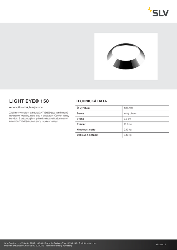 SLV LIGHT EYE® 150 1008191 Pierścień dekoracyjny chrom