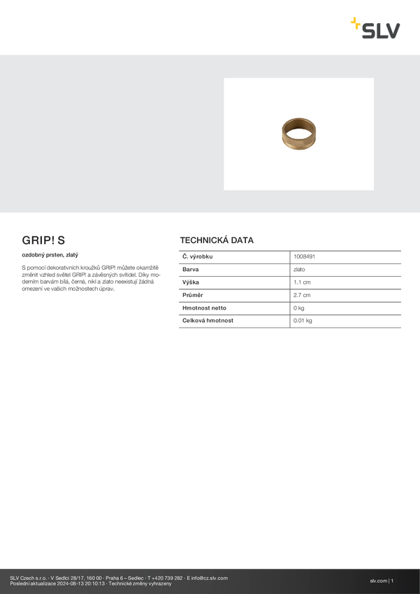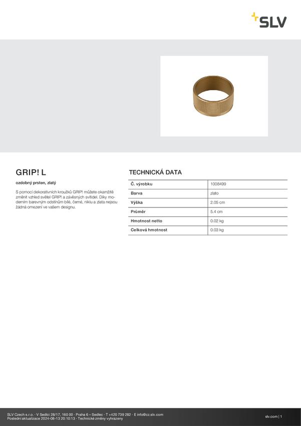 SLV GRIP! L 1008499 Pierścień dekoracyjny złoty