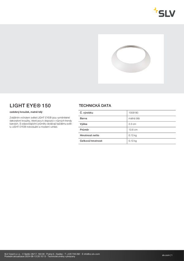 SLV LIGHT EYE® 150 1008190 Pierścień dekoracyjny biały