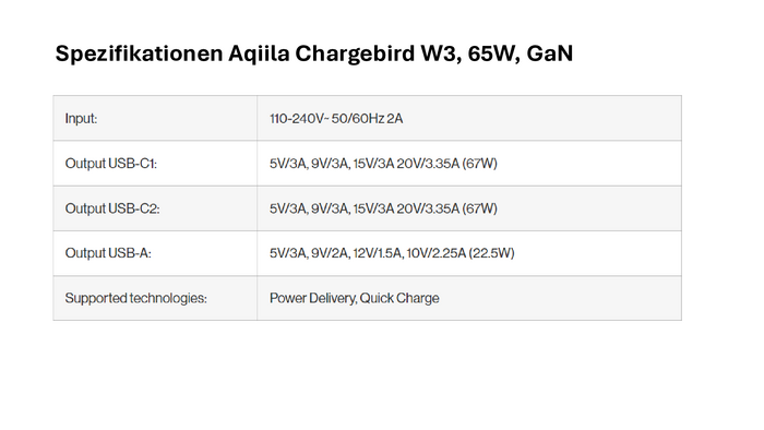 Aqiila W3 Ładowarka USB 65 W 1x USB-A, 2x USB-C® Power Delivery, Quick Charge 3.0, QC 4+ biały dom