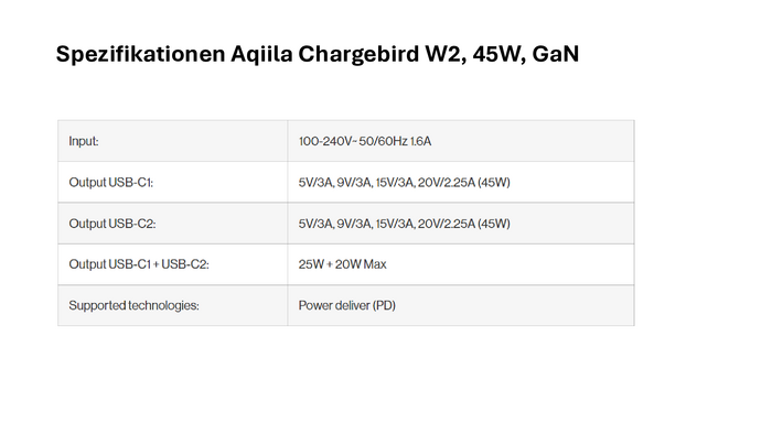 Aqiila W2 Ładowarka USB 45 W 2x USB-C® Power Delivery biały dom