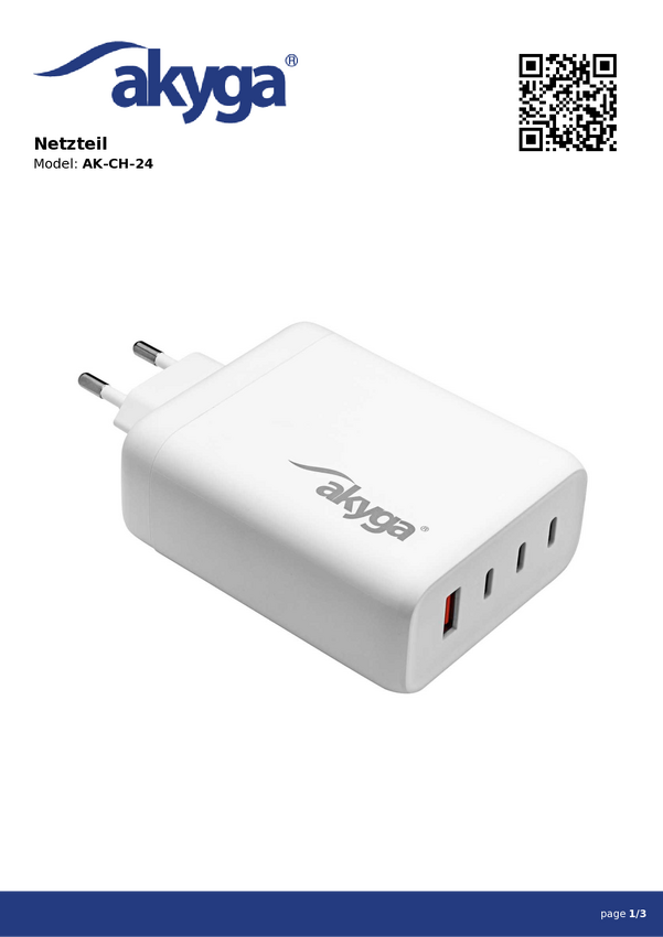 Akyga AK-CH-24 Ładowarka USB 140 W 3x USB-C®, 1x USB-A Quick Charge 3.0, Power Delivery 3.0 biały dom