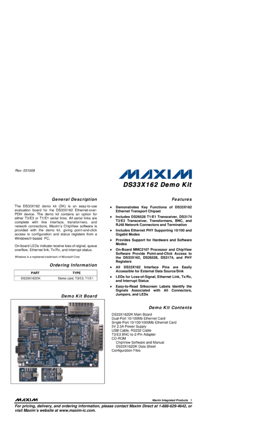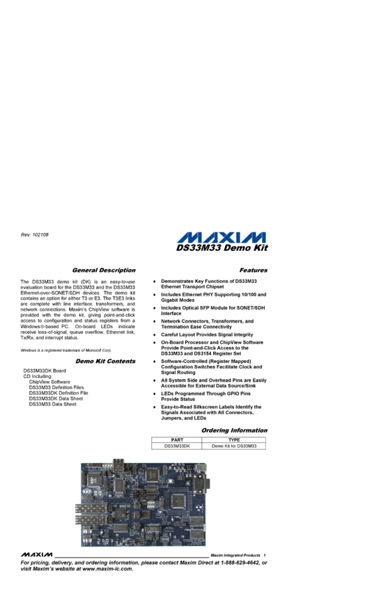 DS3150DK Demo Kit for the DS3150 DS3/E3/STS-1 LIU