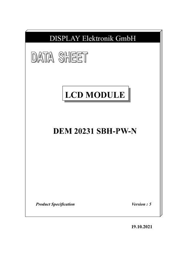 Wyświetlacz LCD Display Elektronik DEM20231FGH-PW czarny biały (S x W x G) 116 x 37 x 12 mm