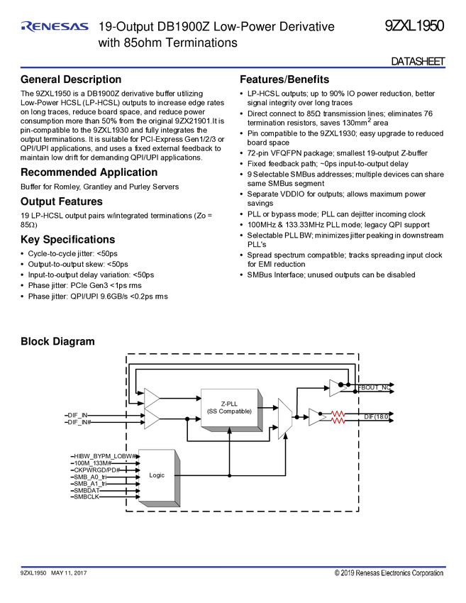 8-Output DB800ZL Derivative with Integrated 85ohm Terminations