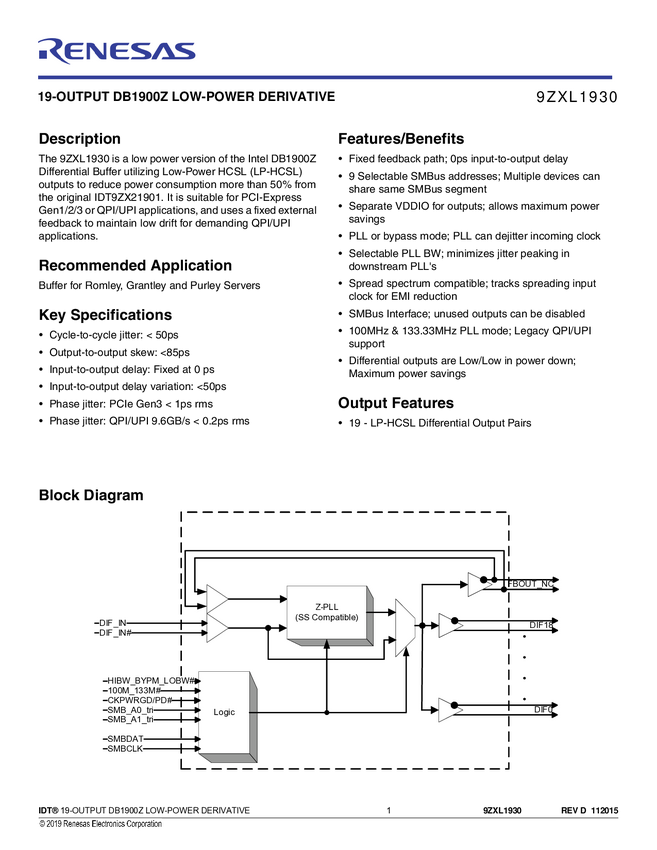 12-Output DB1200ZL Derivative with Integrated 85Ω Terminations