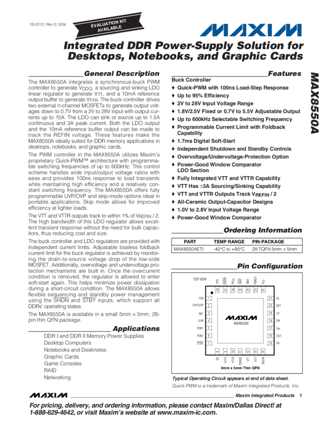 MAX8550A Integrated DDR Power Supply Solution for Desktops, Notebooks, and Graphic Cards