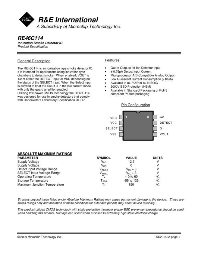 CMOS Ionization Smoke Detector ASIC (10/21/2009)